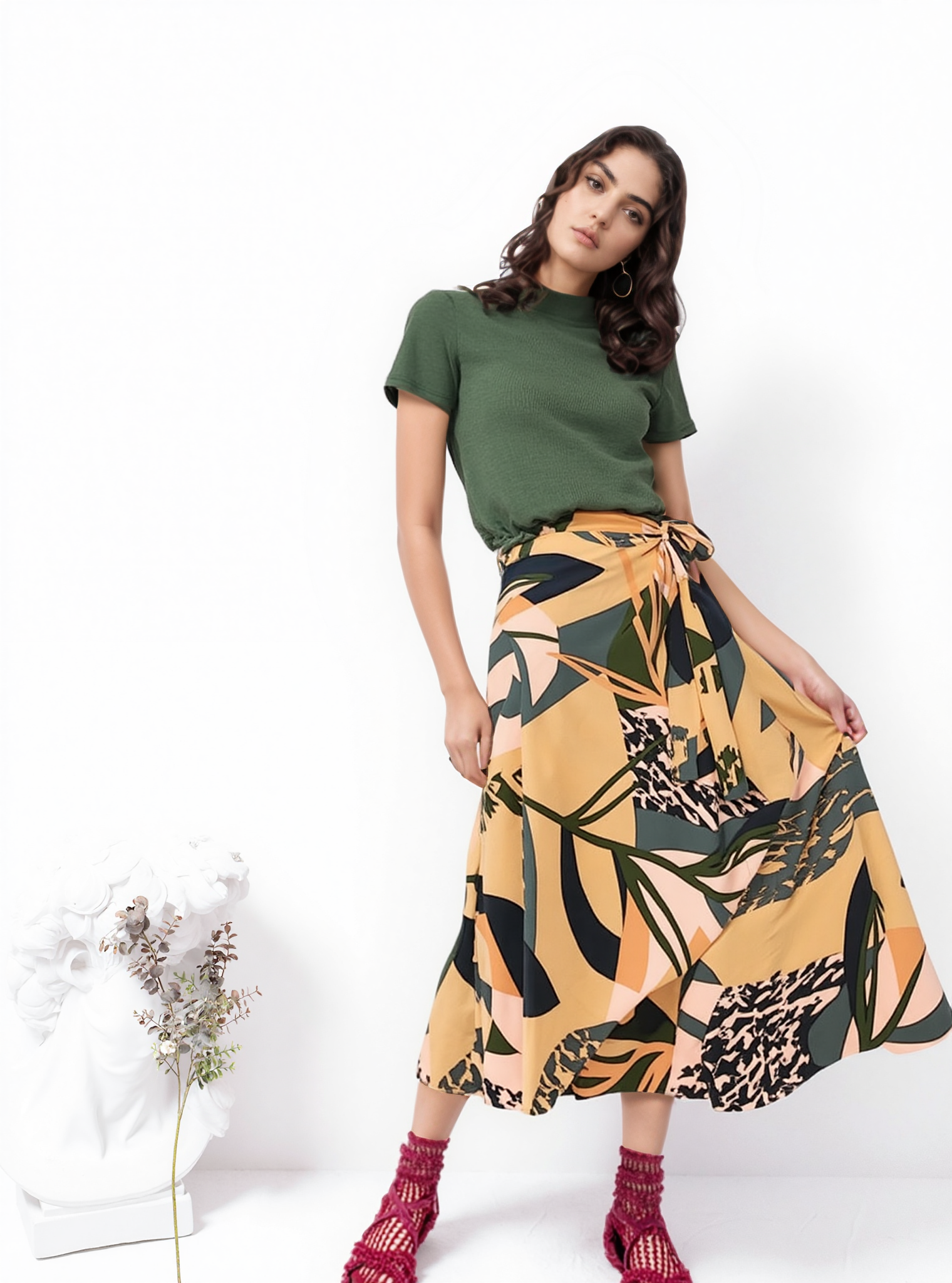 A saia envelope estampada em visco linho com algodão é a peça perfeita para um look leve, estiloso e cheio de personalidade. Seu corte transpassado com amarração lateral permite um ajuste confortável ao corpo, valorizando a silhueta com delicadeza. O mix de tecidos naturais garante frescor, toque macio e caimento fluido — ideal para os dias mais quentes. A estampa traz charme e autenticidade, destacando o visual com um toque boho e feminino. Versátil, pode ser combinada com blusas básicas, croppeds ou camisas para compor looks casuais ou mais arrumados. Uma escolha prática e cheia de estilo para mulheres que valorizam conforto, naturalidade e elegância no dia a dia.